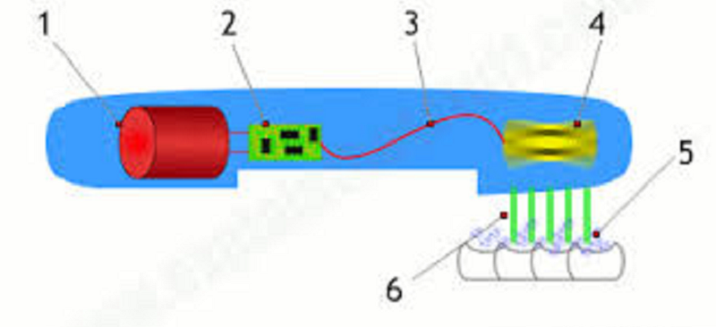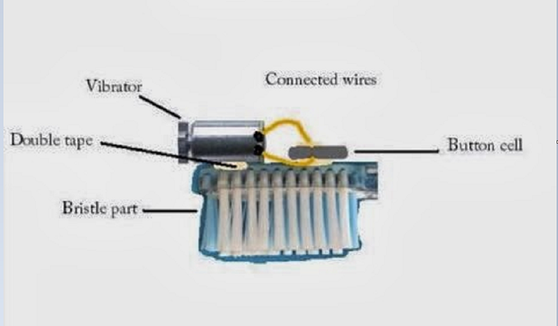 Alcuni spazzolini elettrici funzionano con la ricarica induttiva, che è quando due parti di un trasformatore all'interno della spazzola vengono riunite e un piccolo campo magnetico crea una corrente elettrica per caricare la batteria. Altri spazzolini elettrici sono gestiti da batterie sostituibili o ricaricabili. I componenti elettronici degli spazzolini da denti devono essere sigillati per evitare che l'arrivo dell'acqua, il che danneggerebbe le parti elettroniche e renderebbe inutilizzabile il prodotto. Gli spazzolini elettrici, poiché devono rimanere impermeabili, vengono spesso caricati attraverso un'unità di ricarica contenente componenti elettronici che contengono e controllano una carica elettrica da componenti elettronici come condensatori e resistori. Spazzolini elettrici conMotore di tipo moneta da 3V In genere utilizzare sensori di pressione e dispositivi timer che sono impostati in genere in due minuti, che è il momento in cui l'American Dental Association raccomanda è la migliore per la spazzolatura.