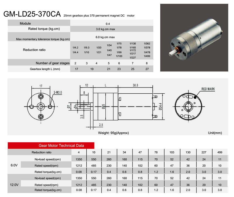 25mm ギアモーターは 0.5Nm のトルクを提供し、より信頼性が高くなります。