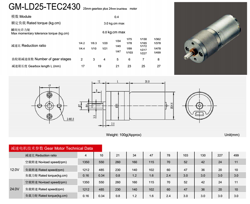 25mm ဂီယာဘောက်စ် နှင့် 24mm brushless မော်တာ