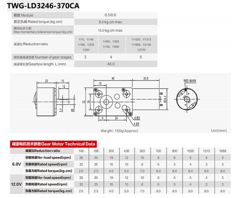 Tehnični parametri izdelka12 voltni polžasti motor: