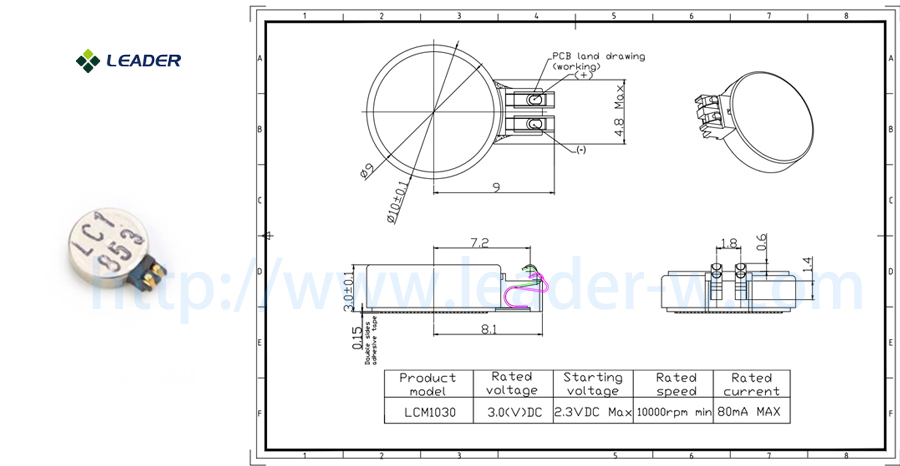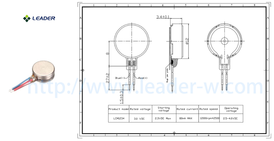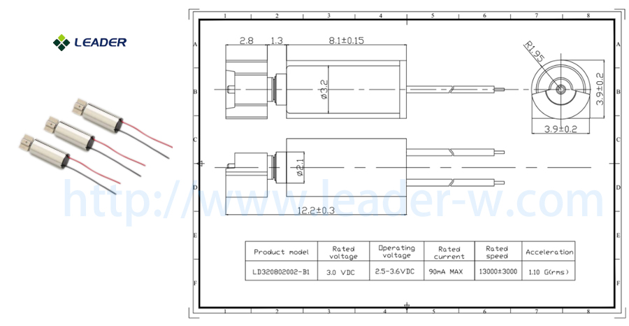 การดึงกระแสทั่วไปคือ 70mA และมอเตอร์มีประสิทธิภาพการสั่นสะเทือนทั่วไปที่ 2.7G/W
