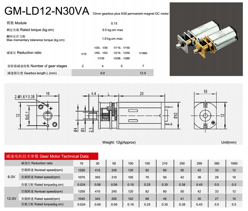 12X10mm gearbox kunye N20 & N30 umazibuthe DC motor esisigxina